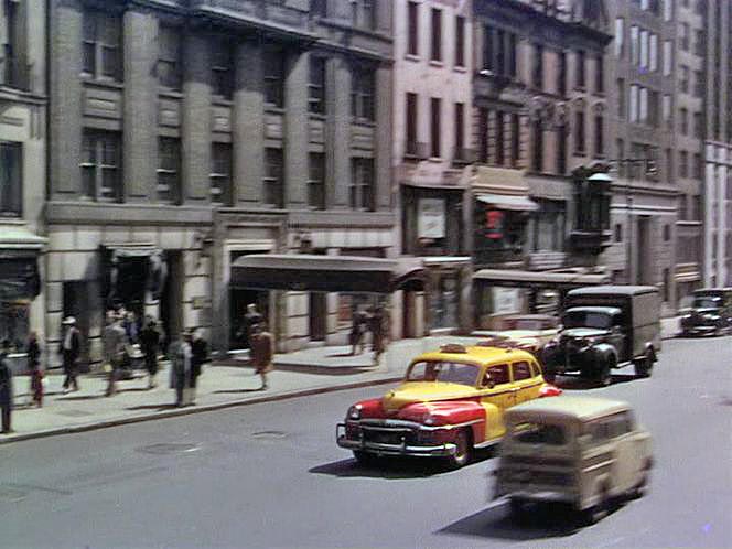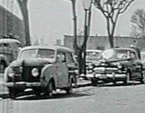34th Street" - (1955 TV): CC Sedan parked on left side in parade scene. Only a little over a minute in to the movie, right after parade starts. This frame shot was from the TV show The 20th Century-Fox Hour release. Looks like they used the footage from the 1947 film as the back drop and put new actors over the canned footage but I didn't have the earlier version to check. It is only there for a frame or two so keep a close eye out. Click on image for full frame of movie. |