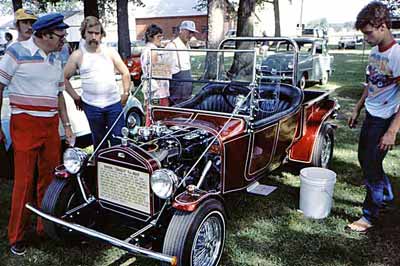 The above down scaled Model A roadster pickup was shown at the 1977 Crosley Nationals. Tim Freshley recognized this as his first car that his Dad and he started building when he was 14 from a 48 wagon and got on the road when he was 16. He sold it in 1973 and it has went through a few owners and modifications since. He did not know who owned it in 1977. Last he knew it was in New Jersey. |