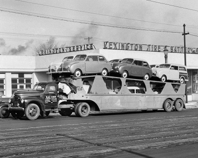 ![]() A nice load of 1947 CCs on Crosley's trick double wide on the top hauler. |