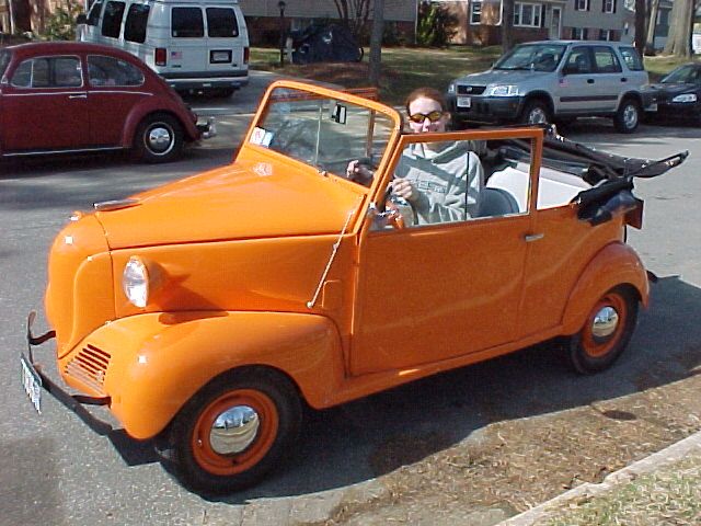 ![]() "The orange color is not original of course, but does make it a bit easier to see when I drive it. The neighbors and their children are all delighted to see little Blossom as she putters through the community and she never fails to attract a crowd when we stop. It usually takes a bit of Crosley Pre War History and answers to many questions before I can amble on, but Blossom never fails to leave smiles and waves behind her when we go!" Don lives in Fairfax County, Virginia. |